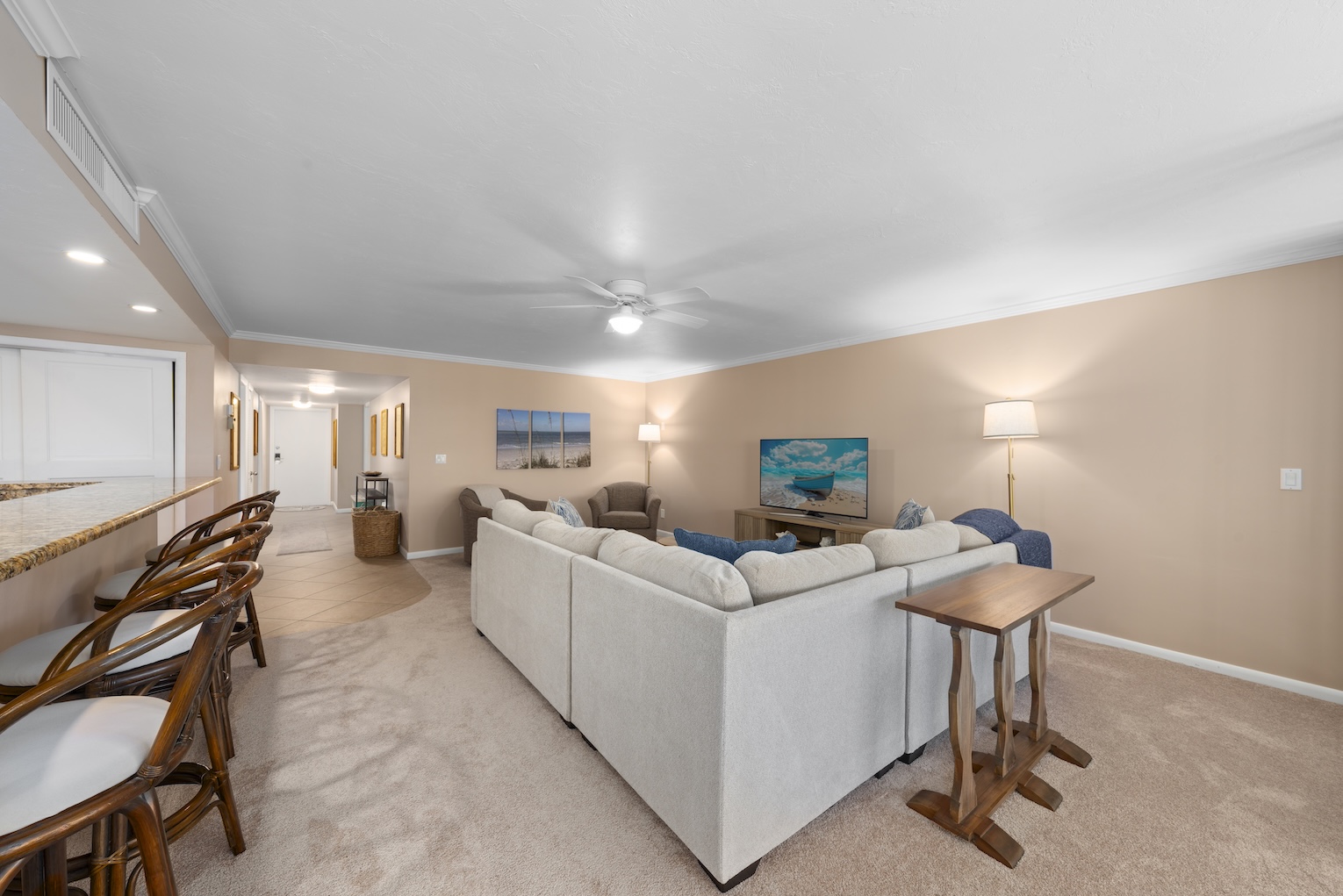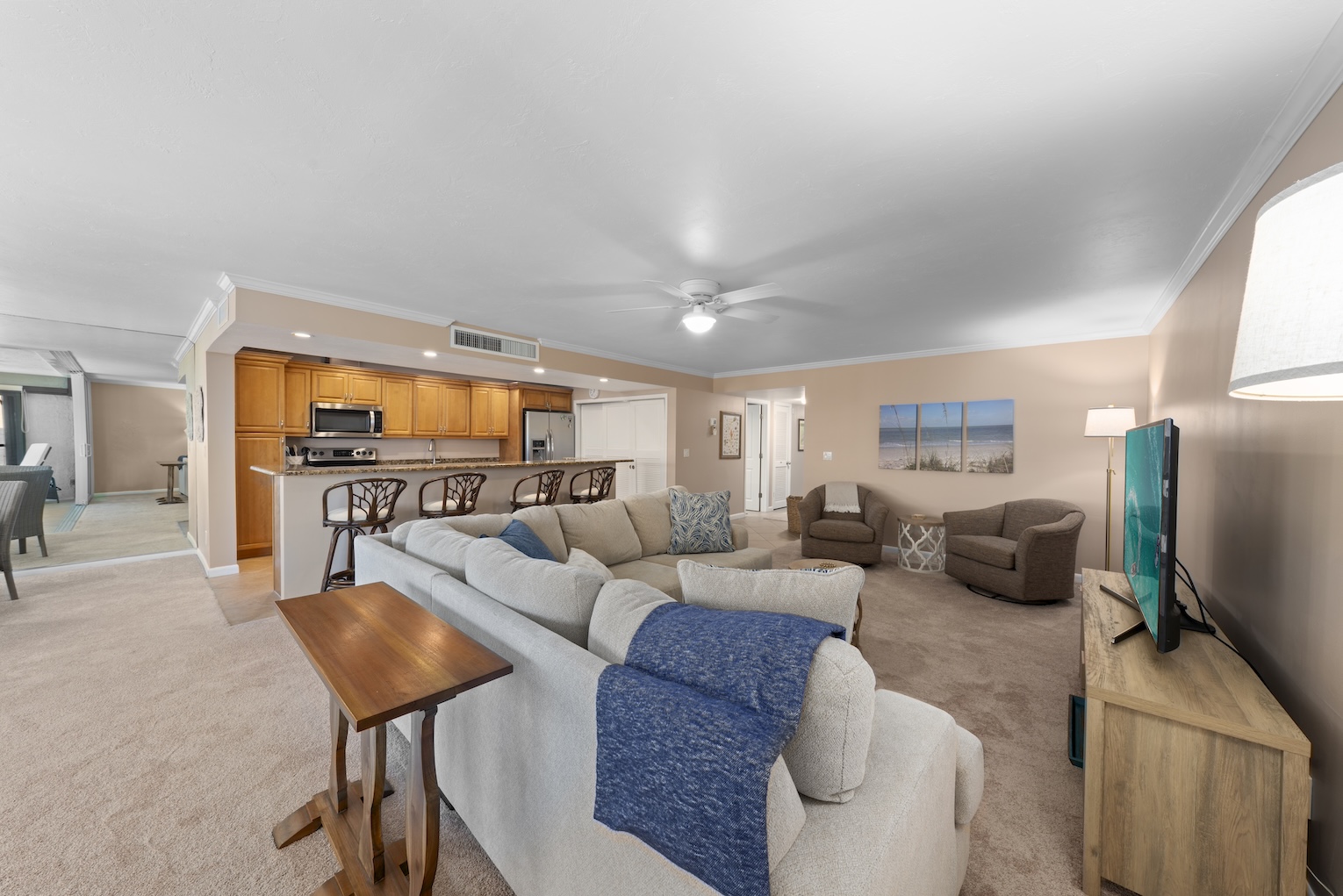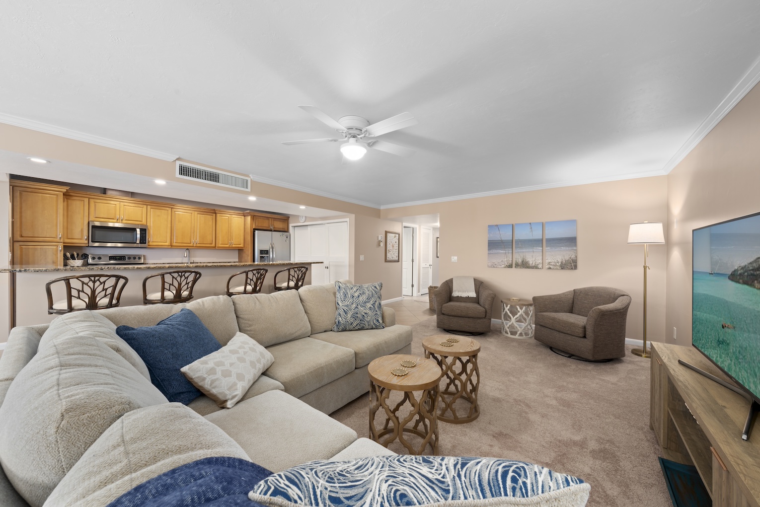 Welcome to Kings Crown 309! This spectacular 2-bedroom, 2-bathroom Gulf-side vacation rental condo on Sanibel Island offers the perfect getaway, located just off the highly sought-after West Gulf Drive. With its charming coastal decor and thoughtful furnishings, this condo is designed for comfort and relaxation. Enjoy breathtaking views of the Gulf from your private screened lanai, a tranquil space to unwind and soak in the sights and sounds of the ocean. Just steps to the beach, this condo provides easy access to Sanibel's pristine shores. For those who enjoy biking or leisurely walks, the nearby bike path offers the perfect route to explore the island. Plus, you're only a short distance from Sanibel's best shopping and restaurants, ensuring you have everything you need for a perfect vacation.