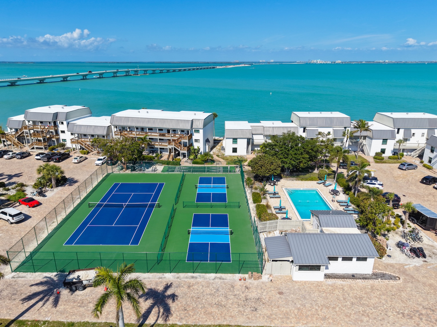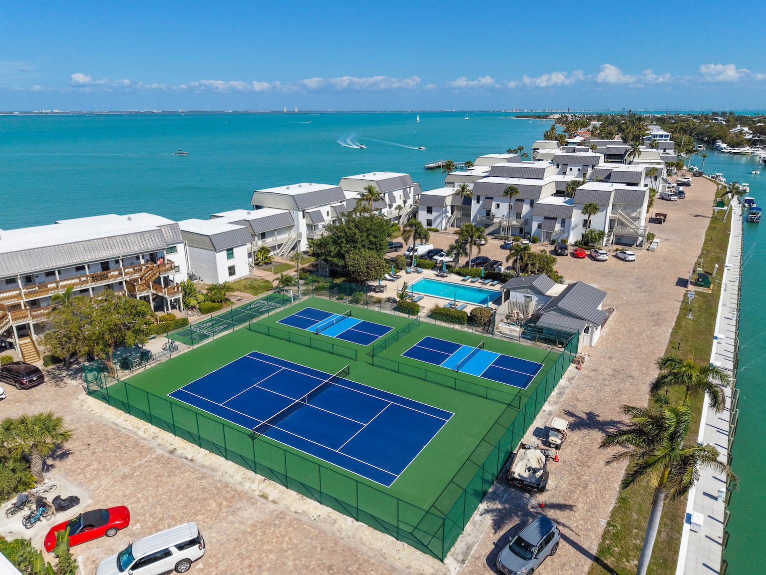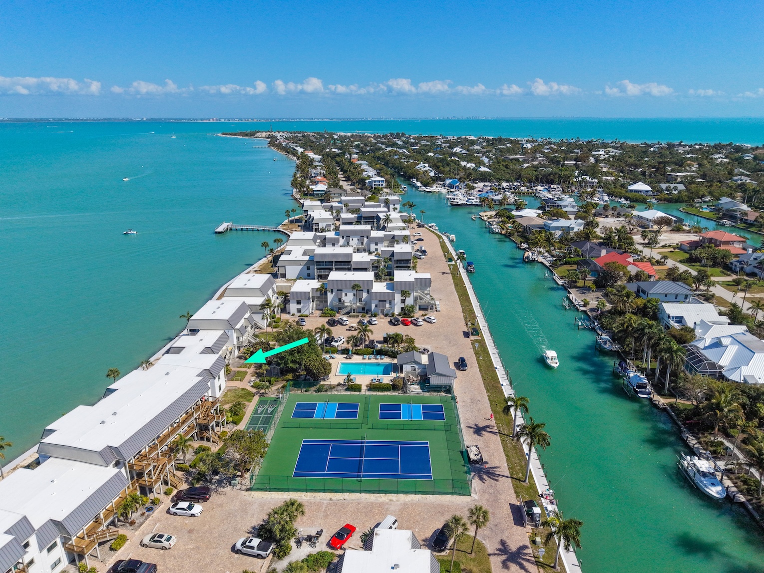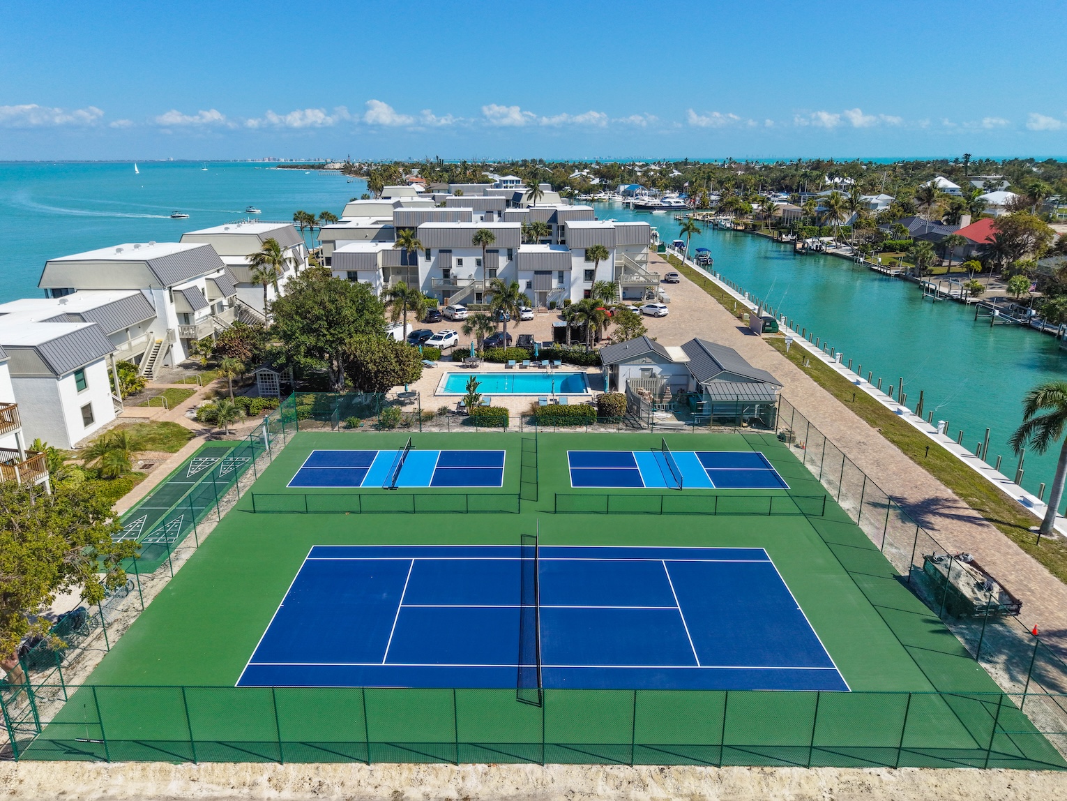 Mariner Pointe is a great community that offers an array of enjoyable amenities to its guests and has the ideal location with easy on & off access to the Sanibel Causeway. Enjoy two heated swimming pools, an all-weather tennis court, pickleball court and multi-use court (can be used for pickleball also), a private fishing pier, eleven barbecue grills, private canal-side dockage, easy-in/out kayak launch pad with nearby storage area, shuffleboard, reserved parking, deeded beach access and easy access to nearby beaches, shops & restaurants and the island-wide bike paths.