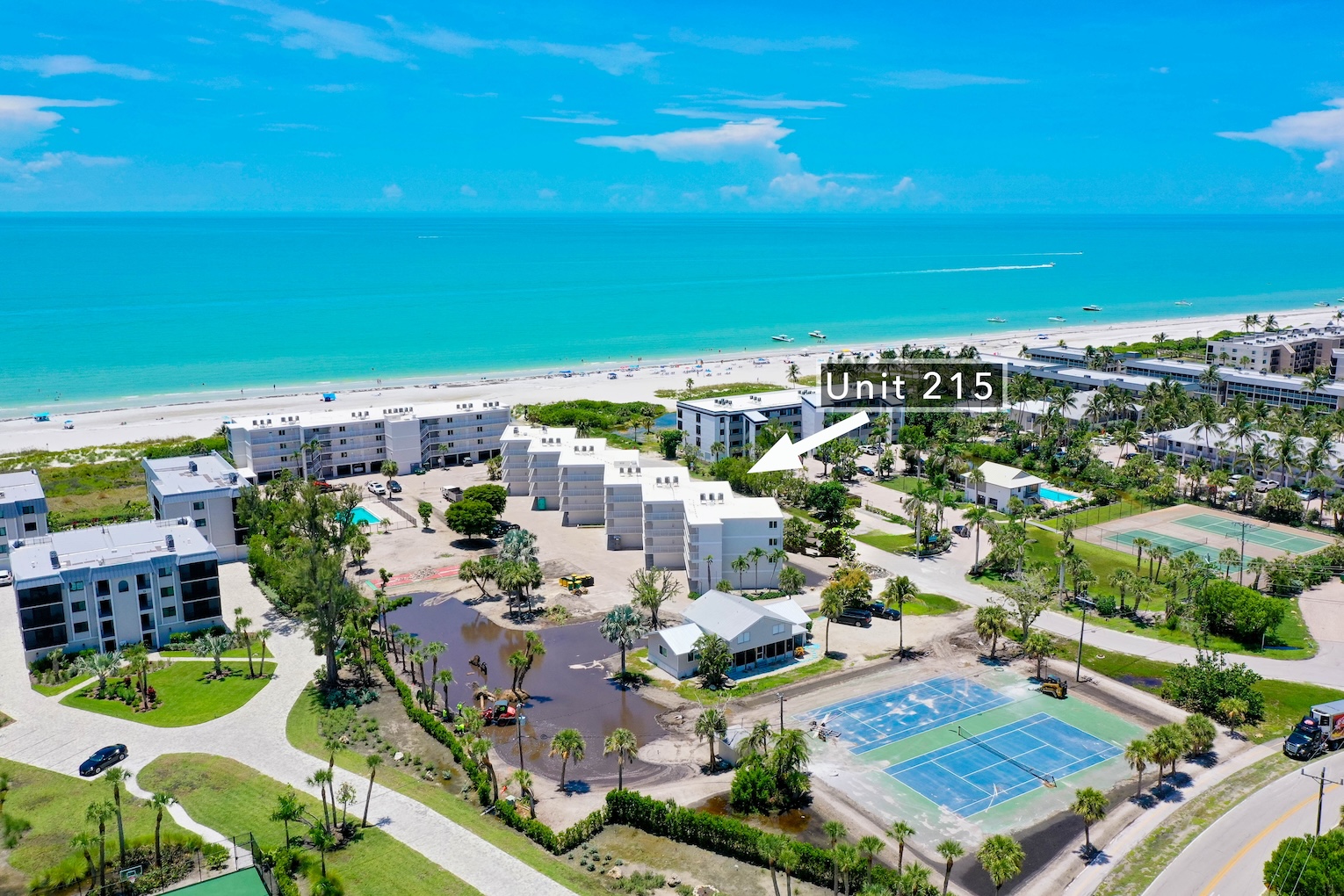 Condo amenities include: 2 bedrooms/2 bathrooms -- 1 King bed & 2 Twin beds (sleeps 4), Smart TVs (streaming only), WIFI available, shared heated pool, in suite washer & dryer, screen & glass enclosed lanai, public BBQ gas grills, shuffleboards, tennis & pickle ball courts, elevators, covered parking. No Pets allowed. Bed linens and Bath towels included. Beach chairs, beach towels, and an umbrella are provided for added convenience.